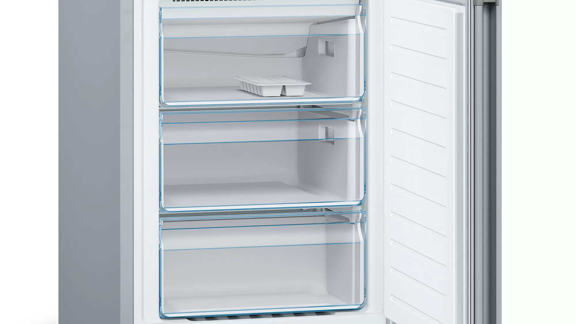 Zapomnij o uciążliwym rozmrażaniu. Ręczne rozmrażanie chłodziarki może być bardzo uciążliwe i czasochłonne. Dzięki naszym chłodziarko- zamrażarkom z funkcją No Frost, można na dobre skreślić tę czynność ze swojej listy zadań. Równomierny obieg suchego zimnego powietrza zapobiega tworzeniu się lodu w całym wnętrzu chłodziarko-zamrażarki. W rezultacie na tylnej ściance lodówki nie gromadzi się lód, a szuflady zamrażarki można zawsze łatwo otwierać i zamykać bez warstwy lodu. Funkcja No Frost nie tylko zapobiega powstawaniu lodu, ale również eliminuje potrzebę ręcznego rozmrażania. Czasy epoki lodu i uciążliwego rozmrażania odchodzą do przeszłości.
