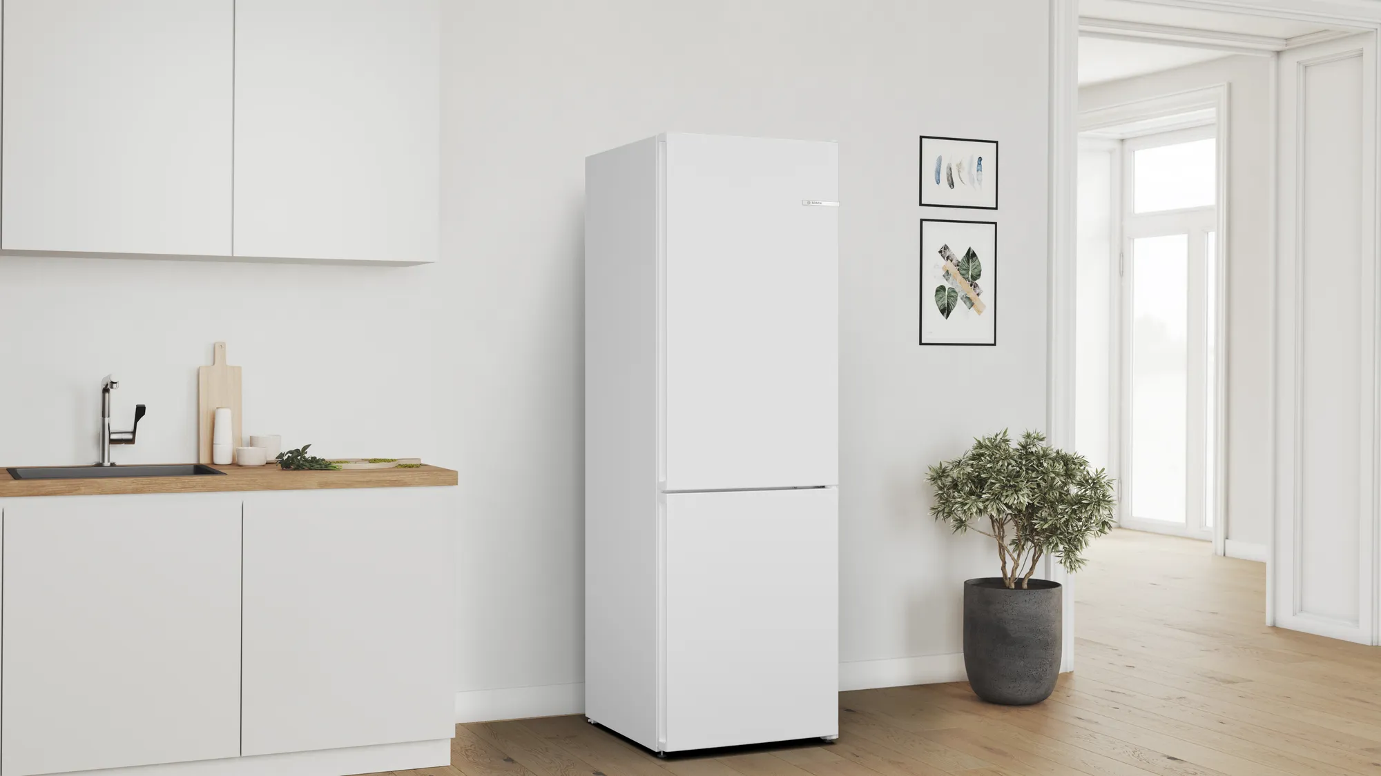 Dzięki PerfectFit nasza wolnostojąca chłodziarko-zamrażarka może być ustawiona bezpośrednio przy ścianach bocznych i meblach. Szerokość zamrażarki odpowiada wymiarom wnęki. Wyeliminowanie szpar znacznie poprawia estetykę zabudowy. Pełen dostęp do wszystkich szuflad zapewnia 90° kąt otwarcia drzwi. Umieść lodówkę w dowolnym miejscu.