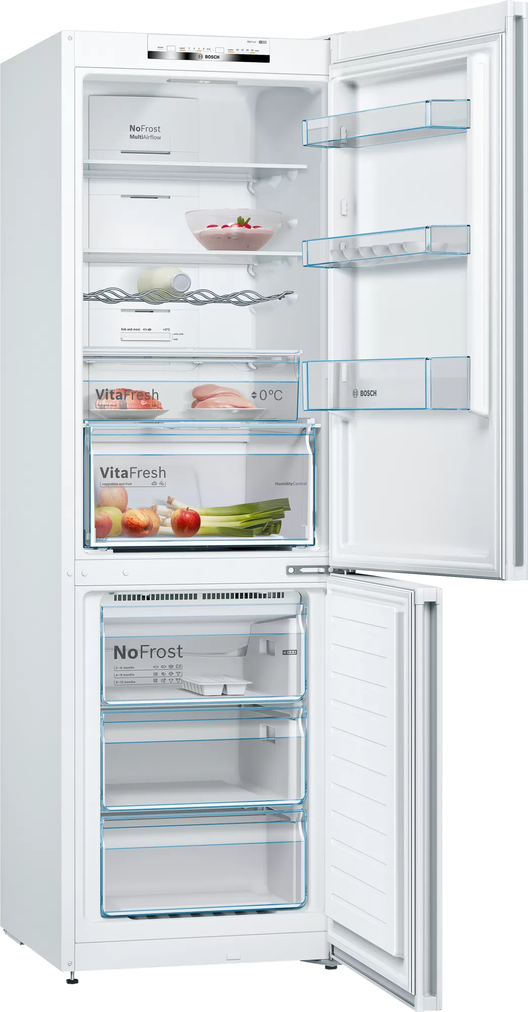 System VitaFresh stwarza idealne warunki do przechowywania świeżej żywności. Ryby i mięso dłużej zachowują świeżość w temperaturze bliskiej 0°C. Duża, dolna szuflada przystosowana jest dla owoców i warzyw. Dzięki optymalnym warunkom owoce i warzywa mogą dłużej zachować dobrą kondycję. Więcej jedzenia, mniej marnowanego jedzenia.