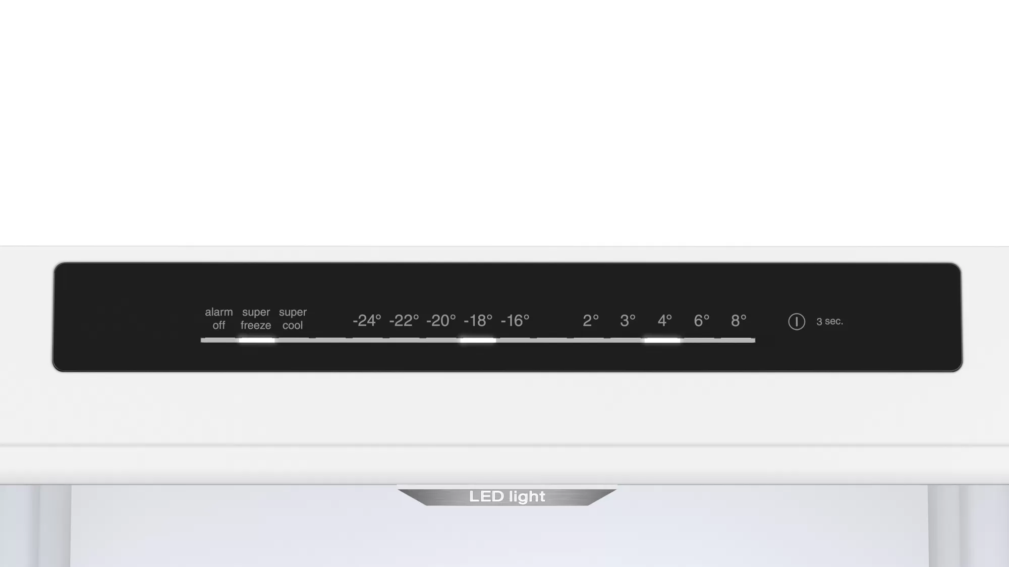 Zastosowanie diod LED to zupełnie nowa koncepcja oświetlenia wnętrza chłodziarki zapewniająca równomierne rozłożenie światła w jej wnętrzu. Trwałe, energooszczędne diody LED automatycznie oświetlają wnętrze wspaniałym białym światłem oraz zapewniają komfortowe jasne, jednolite i nieoślepiające oświetlenie wnętrza. Oświetlenie LED pomaga mieć oko na wszystko w lodówce.