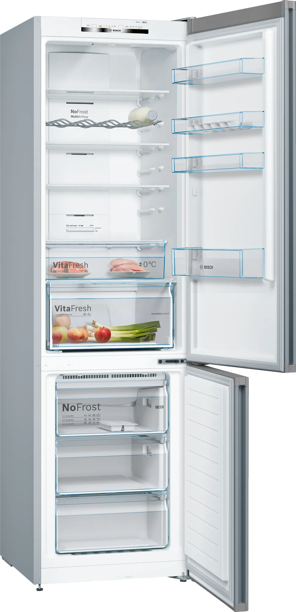 System VitaFresh stwarza idealne warunki do przechowywania świeżej żywności. Ryby i mięso dłużej zachowują świeżość w temperaturze bliskiej 0°C. Duża, dolna szuflada przystosowana jest dla owoców i warzyw. Dzięki optymalnym warunkom owoce i warzywa mogą dłużej zachować dobrą kondycję. Więcej jedzenia, mniej marnowanego jedzenia.