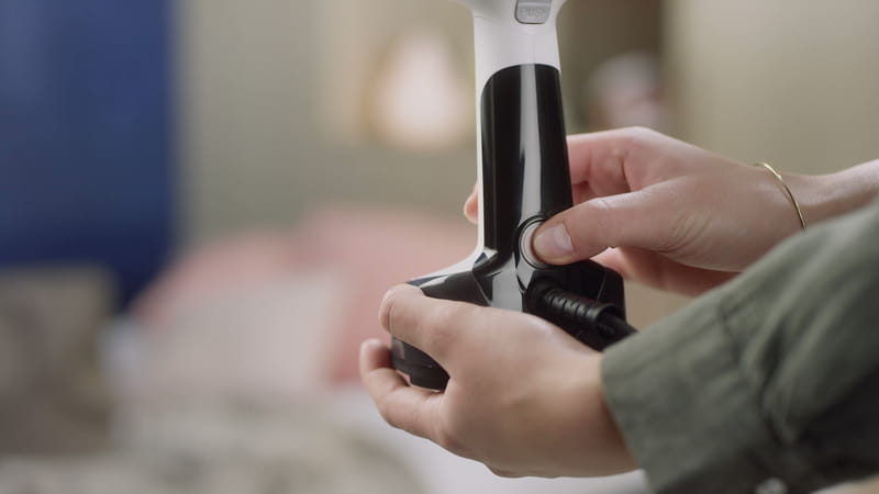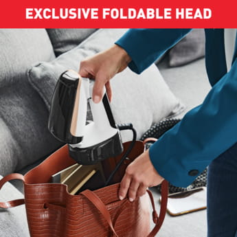 Składana głowica pozwala na bezproblemowe przechowywanie urządzenia. Dwukrotnie mniejszy rozmiar sprawia, że parownica sprawdza się zarówno w podróży, jak i podczas codziennego korzystania w domu.