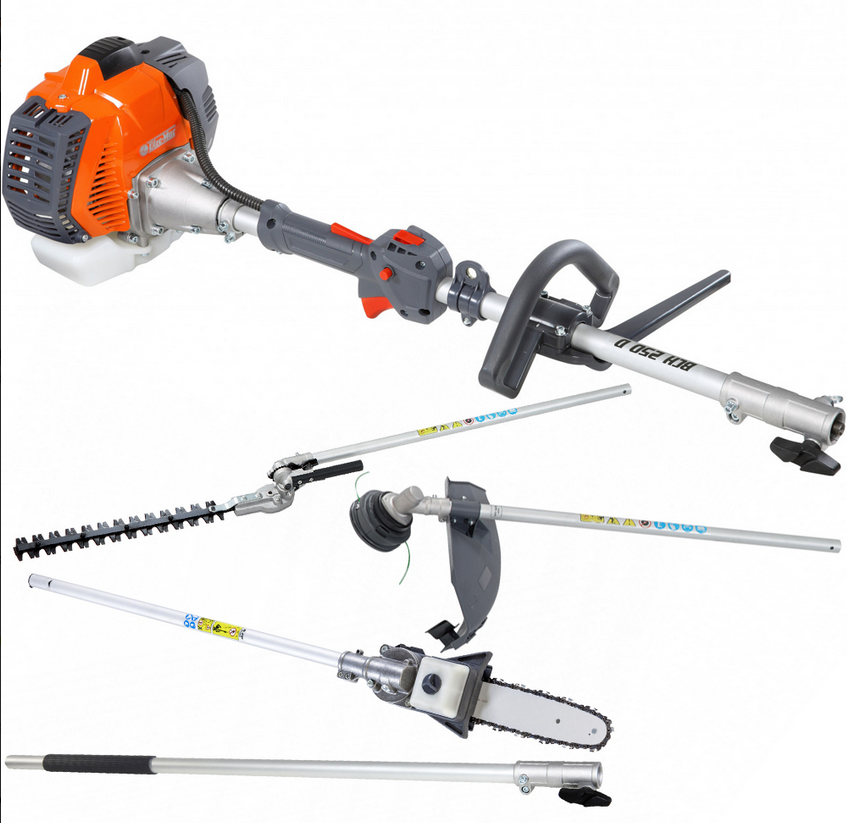 Jednostka napędowa, która umożliwia zastosowanie kilku przystawek, a cały zestaw to prawdziwe urządzenie wielofunkcyjne. Idealnie nadaje się do koszenia trawnika, przycinania żywopłotów, cięcia gałęzi krzewów oraz wydmuchiwania liści czy śmieci. System szybkiego podłączania "no tool", pomaga w szybkim przestrojeniu i efektywnej pracy.