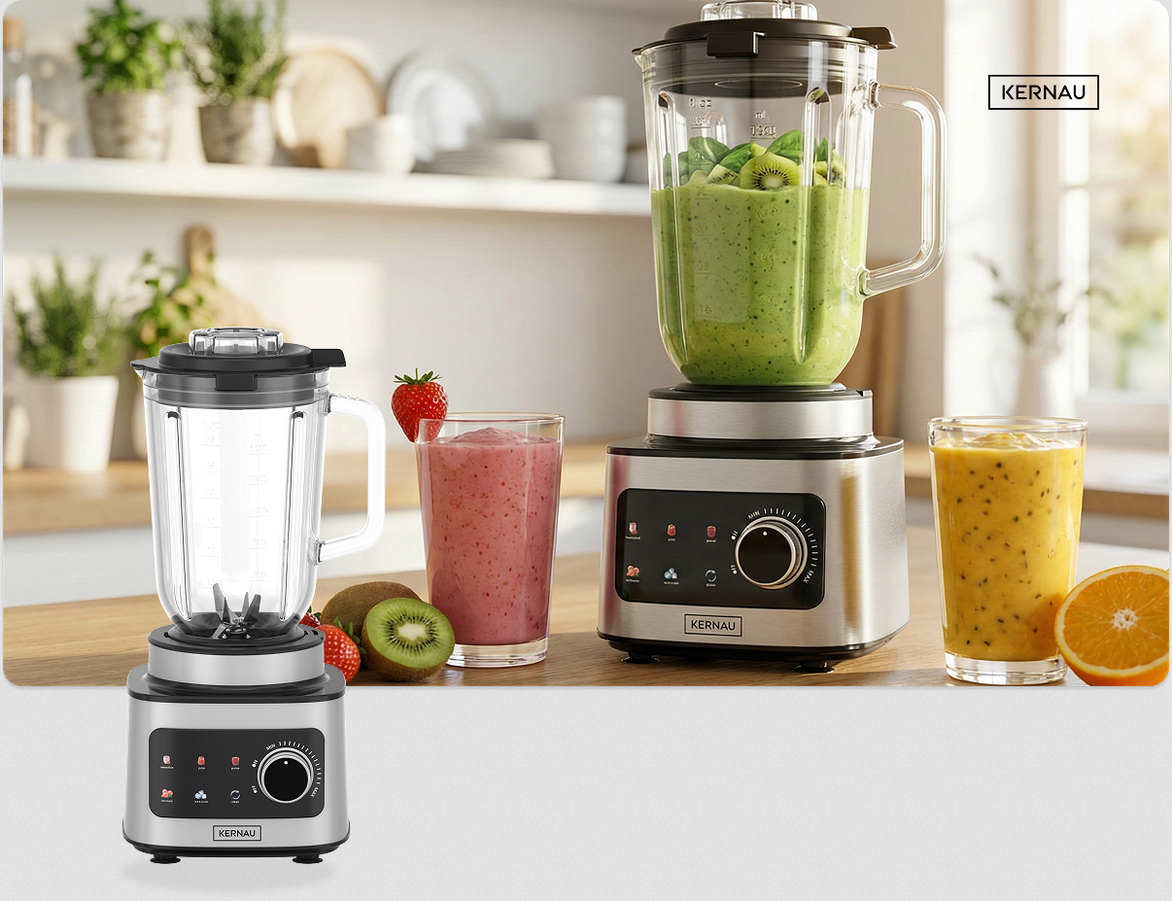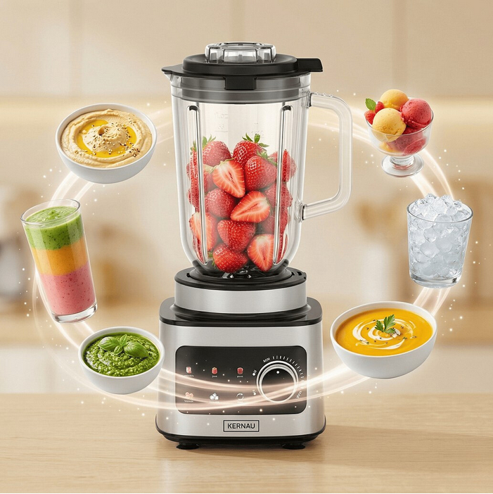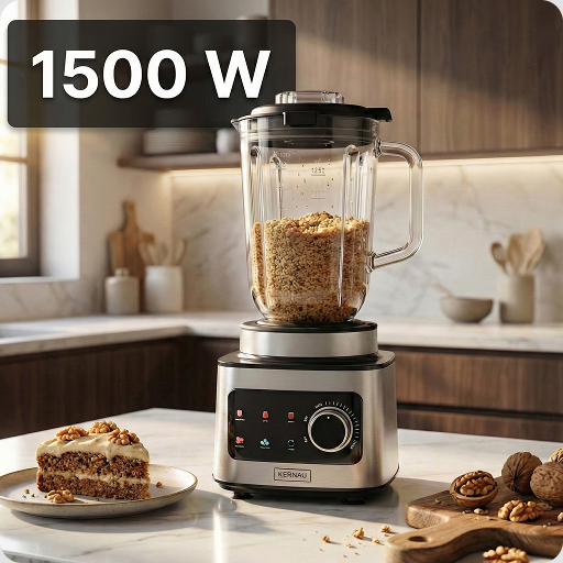 Dzięki mocy aż 1500 W, blender Kernau KTB 121 ES bez trudu radzi sobie z twardymi składnikami, jak orzechy, lód czy surowe warzywa. Tak wysoka moc gwarantuje szybkie blendowanie i idealnie gładką konsystencję zup, koktajli czy sosów – nawet przy codziennym, intensywnym użytkowaniu.