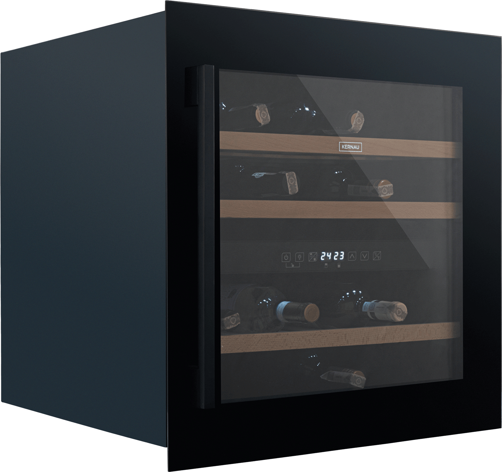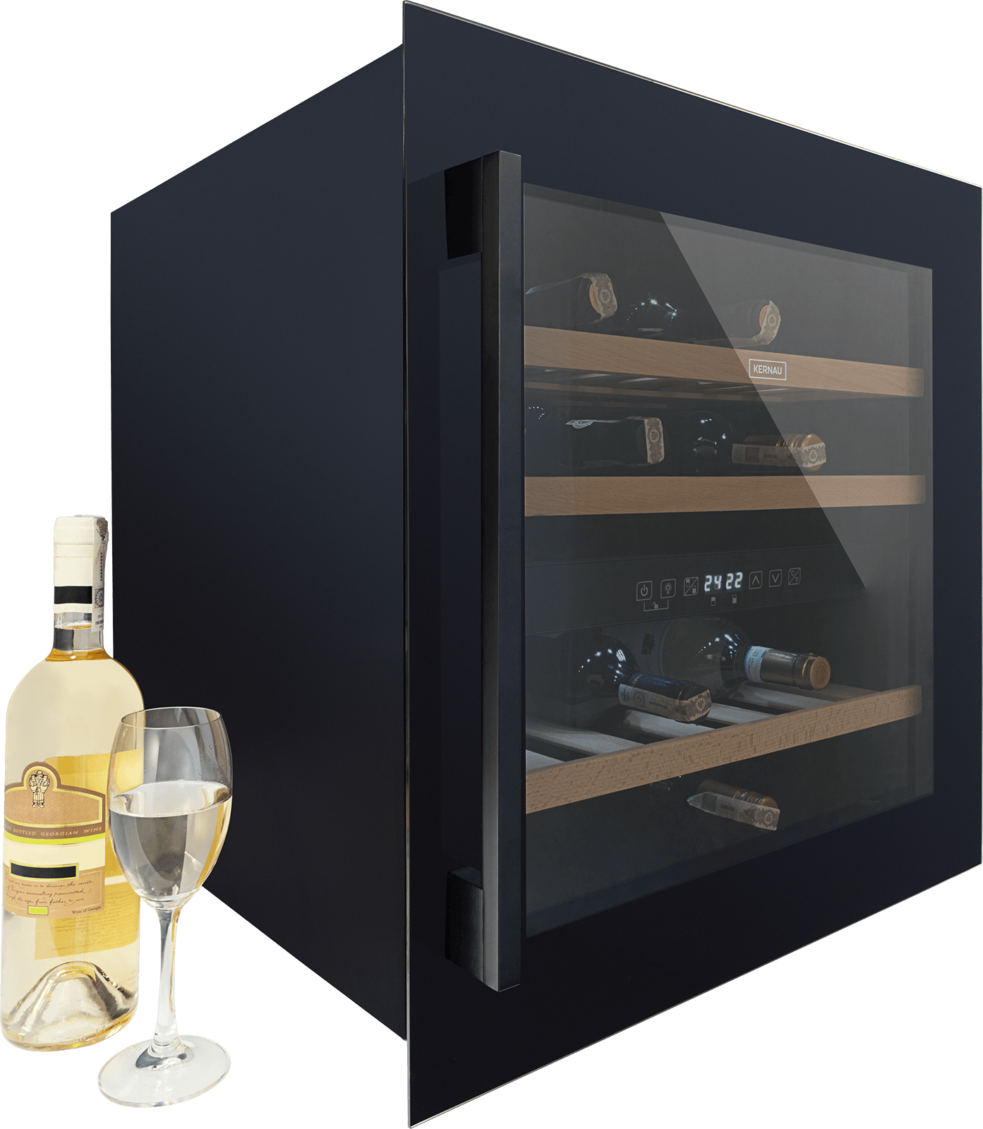 Winiarka Kernau sprawdzi się niezależnie od tego, czy jesteś amatorem dobrego wina, czy dopiero zaczynasz swoją przygodę z winiarstwem. Urządzenie zapewnia optymalne warunki dla Twojej kolekcji win, a do tego wygląda efektownie. Stylowa czarna obudowa, drewniane półki i szklane drzwi dodadzą prestiżowego smaczku wnętrzu.