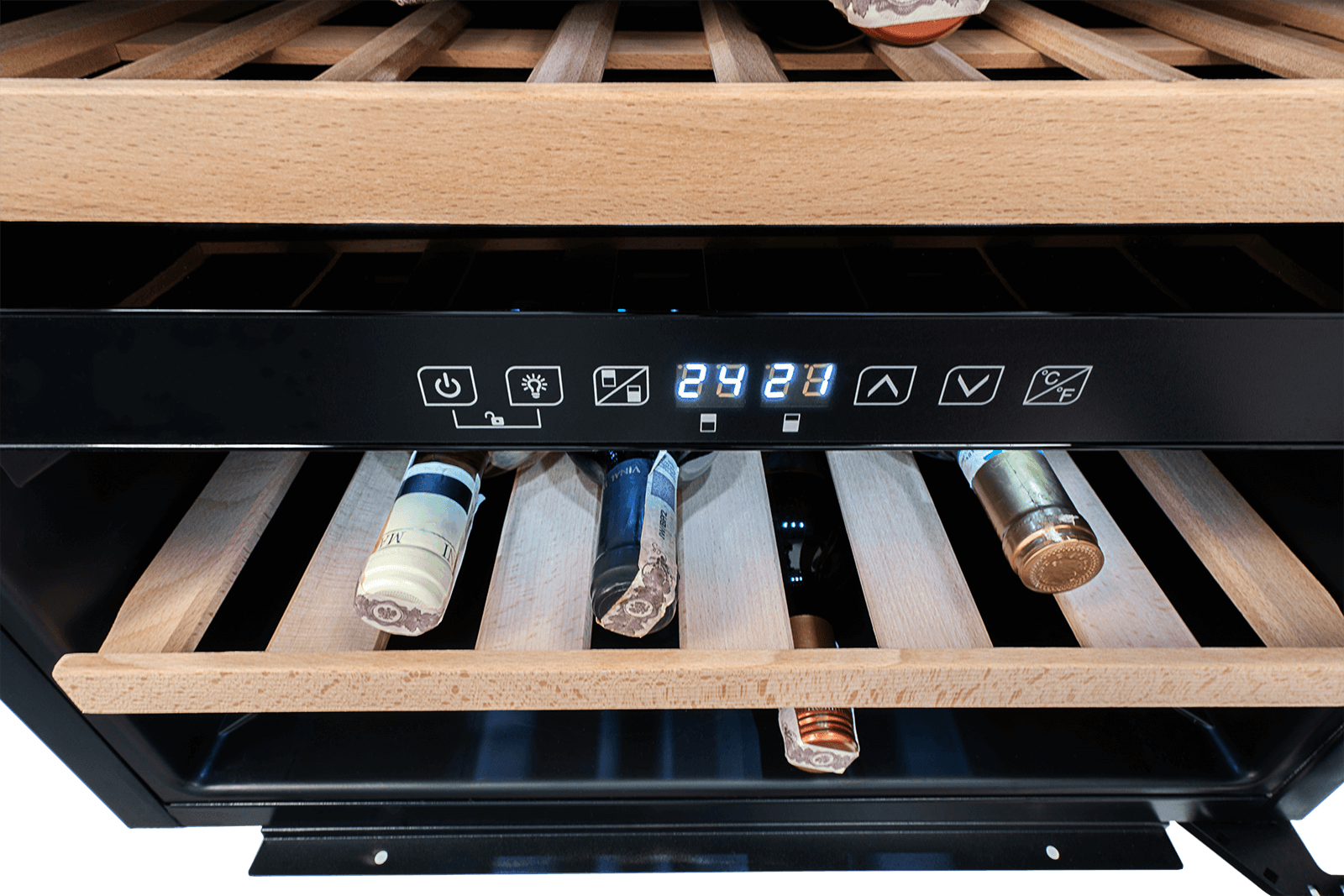 Dzięki nim masz podgląd na cały swój zbiór i możesz wybrać wino zanim otworzysz lodówkę. To pozwoli ograniczyć do minimum czas, w którym pozostałe butelki będą narażone na kontakt z cieplejszym powietrzem z zewnątrz.