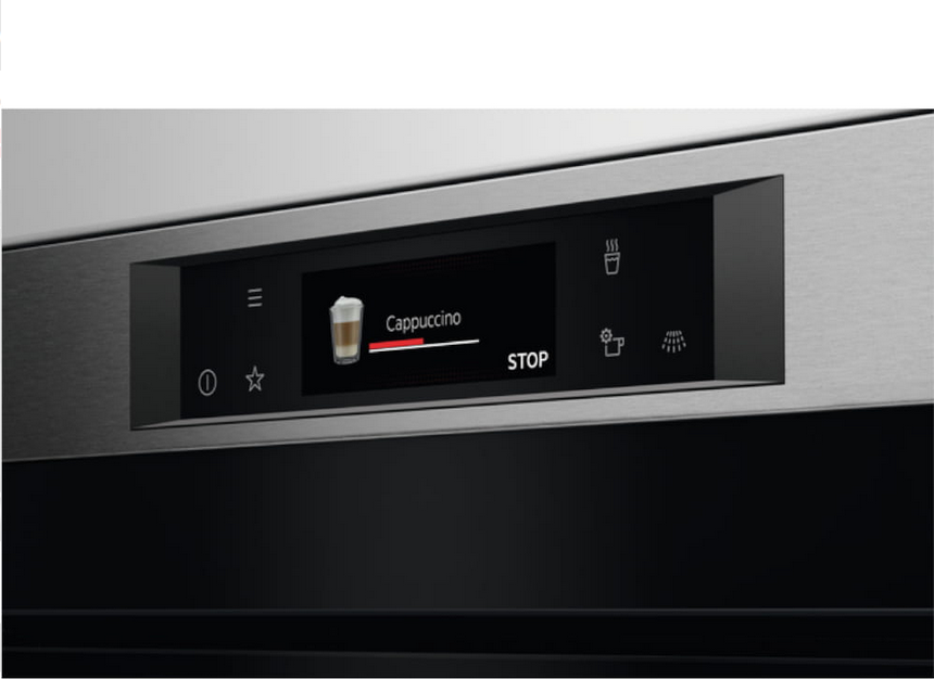Dzięki ekspresowi do kawy AEG smakosze mogą delektować się także innymi gorącymi napojami. Domowe rozwiązanie oferuje kawę o jakości jak od baristy – od intensywnego espresso do puszystego cappuccino – oraz wybór innych gorących napojów. Wybór żądanych opcji ułatwia pokrętło sterowania z czytelnym kolorowym wyświetlaczem.