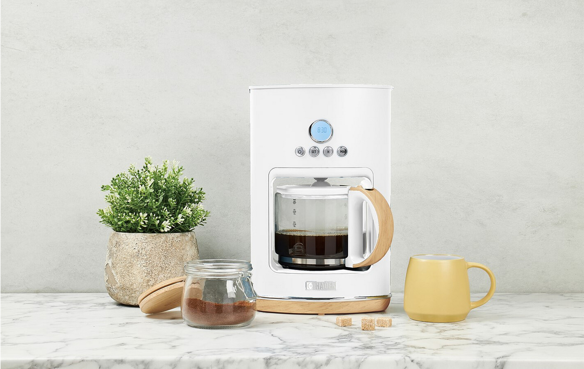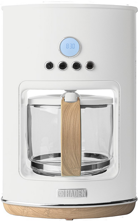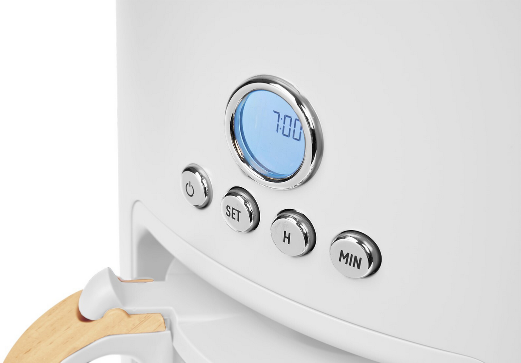 Ekspres przelewowy Haden ma szereg funkcji, które ułatwią Ci codzienny rytuał parzenia kawy. Dzięki przyciskom na froncie urządzenia możesz zmienić moc kawy oraz zaprogramować uruchomienie o wybranej godzinie. Możesz również ustawić godzinę na wyświetlaczu i przerwać zaparzanie w dowolnym momencie.
