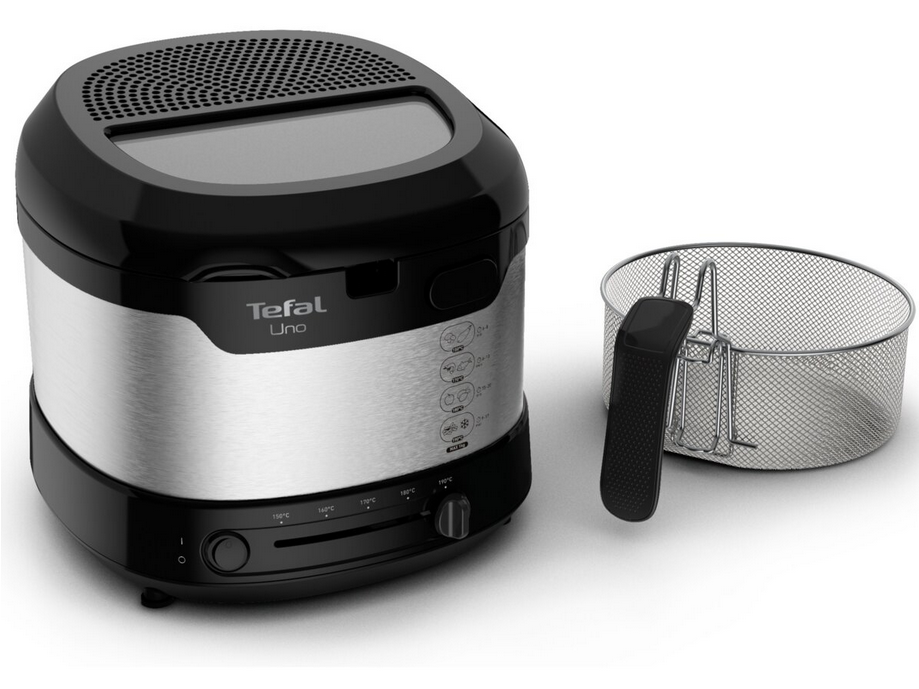 We frytkownicy Uno możesz usmażyć nawet kilogram składników! Z łatwością przygotujesz wiele różnych potraw dzięki regulowanemu termostatowi o zakresie temperatur 150 - 190 °C. Duże okienko w pokrywie pozwala na monitorowanie smażenia bez potrzeby jej otwierania. Korzystanie z urządzenia jest niezwykle wygodne dzięki składanemu uchwytowi i automatycznemu otwieraniu pokrywy. Kompaktowe rozmiary sprawiają, że frytkownica doskonale mieści się w każdej kuchni, a wykonanie ze stali nierdzewnej zapewnia jej nowoczesny i elegancki wygląd.