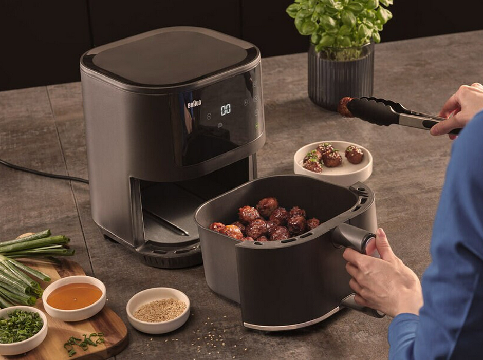Misa o pojemności 4,3 l umożliwia przyrządzanie przekąsek, przystawek i posiłków, takich jak 1,2 kg kurczaka lub 1 kg mrożonych frytek.