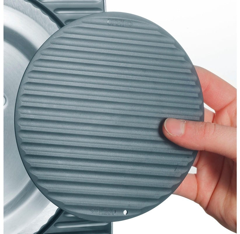 Dla naszej krajalnicy manualnej to nie problem! Krajalnicę wyposażono w najwyższej jakości ząbkowane, hartowane ostrze ze stali nierdzewnej o średnicy 170 mm.
