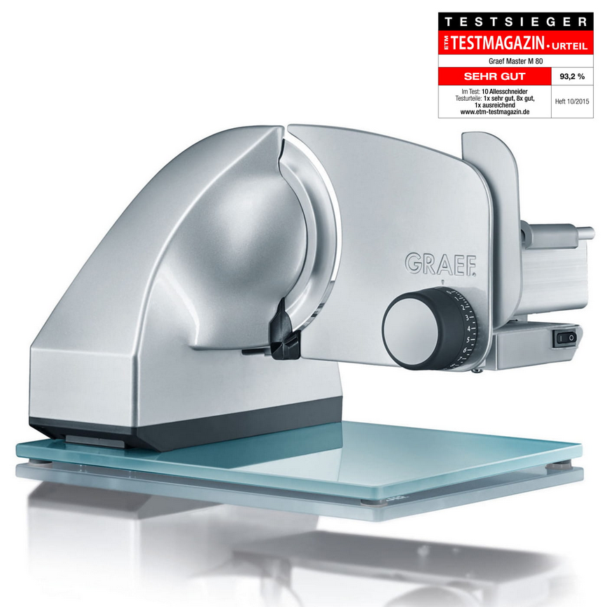 Krajalnica Graef Master M80 to wysokowydajne ostrze z litej stali w połączeniu z cichym silnikiem kondensatorowym o wysokim momencie obrotowym, które umożliwia profesjonalną pracę.