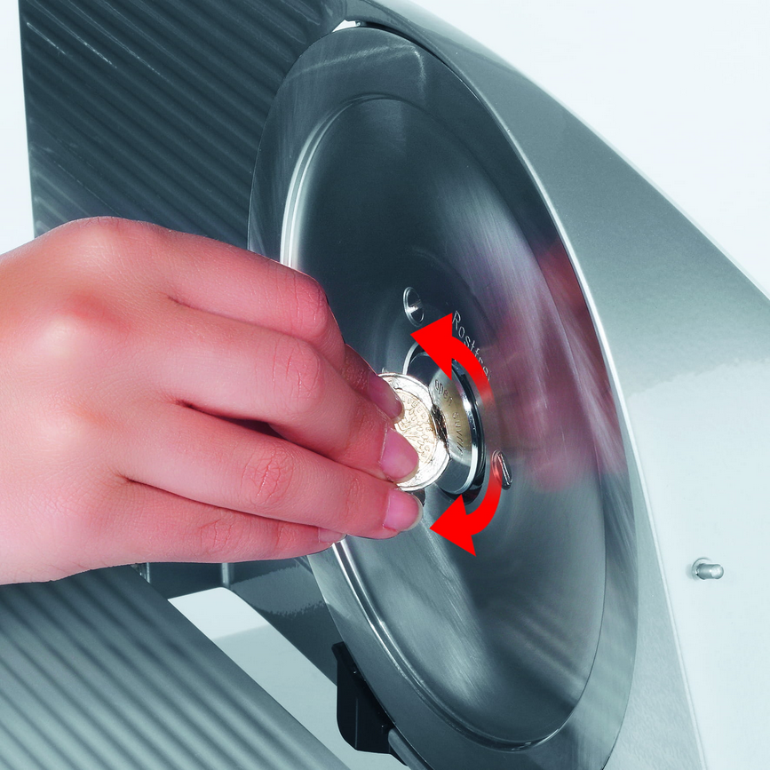 Czeka Cię krojenie warzyw, pieczywa lub owoców? Dla naszej krajalnicy do zabudowy to nie problem! Krajalnicę wyposażono w najwyższej jakości zdejmowalne, hartowane ostrze z litej stali nierdzewnej o średnicy 170 mm oraz osłonę noża ze stali nierdzewnej do zmniejszenia tarcia i łatwiejszego krojenia. Montowane przez nas ostrza z litej stali w są świadectwem niemieckich umiejętności inżynieryjnych i znakomitego wykonania. Wykonywane są ręcznie w naszej fabryce w Arnsbergu w Niemczech a, wszystkie z naszych klasycznych, eleganckich maszyn wyruszają w długą podróż do kuchni i rodzin na całym świecie. Aby zapewnić odpowiedni rozmiar plastrów, które chcesz uzyskać wprowadziliśmy duży obrotowy regulator grubości krojenia od 0 do 20 mm. Ciesz się nawet najcieńszymi plasterkami swojej ulubionej wędliny lub grubymi kawałkami świeżego chleba.