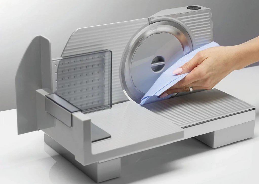Krajalnica Gorenje zapewnia niespotykaną ochronę w trakcie użytkowania i jest łatwa w rozkładaniu i składaniu dla bezproblemowego utrzymywania urządzenia w gotowości do działania. Obudowa jest wykonana z aluminium a ostrza z najwyższej jakości stali nierdzewnej. Tacka na którą spada krojona żywność jest nieznacznie przechylona do łatwego odbierania żywności.