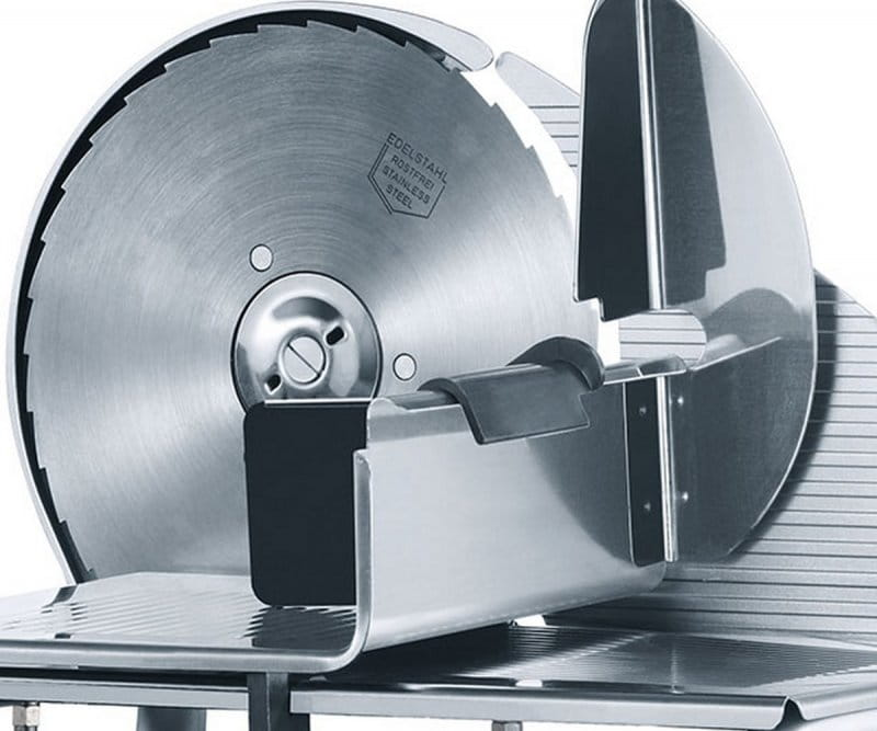 Krajalnicę wyposażono w najwyższej jakości hartowane ostrze ze stali nierdzewnej o średnicy 190 mm. Okrągła tarcza tnąca o falistym, ząbkowanym ostrzu idealnie nadaje się do krojenia chleba/pieczywa z twardą skórką. Jednak doskonałe wyniki krojenia otrzymamy również podczas cięcia różnych wędlin, twardych serów oraz owoców i warzyw.