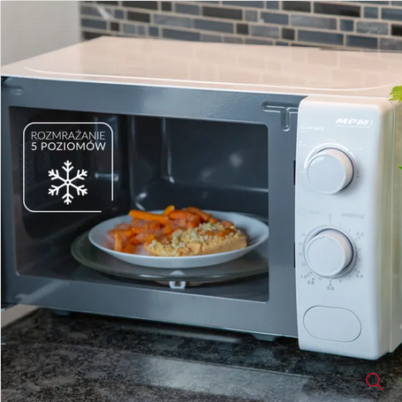 Zdarza Ci się zapomnieć o wyjęciu z zamrażalnika produktów na obiad? Kuchenka mikrofalowa MPM-20-KMM-12/W posiada aż 5 programów automatycznego rozmrażania dla różnych gramatur. Z tą funkcją możesz rozmrażać produkty i całe dania do masy 1 kg bezpośrednio po wyjęciu z zamrażarki. Oszacuj wagę produktu lub potrawy, umieść na talerzu wewnątrz mikrofali i ustaw pokrętłem odpowiedni czas. Żywność rozmrażana przy pomocy kuchni mikrofalowej MPM-20-KMM-12/W zachowuje naturalne walory smakowe.