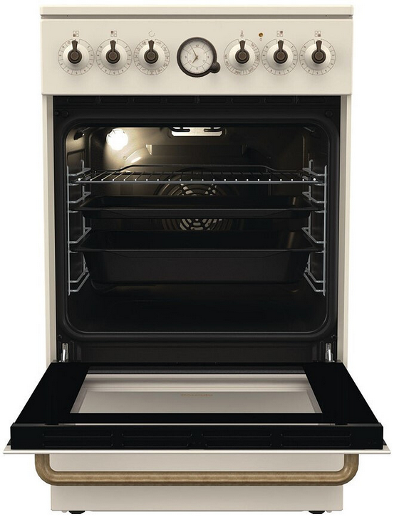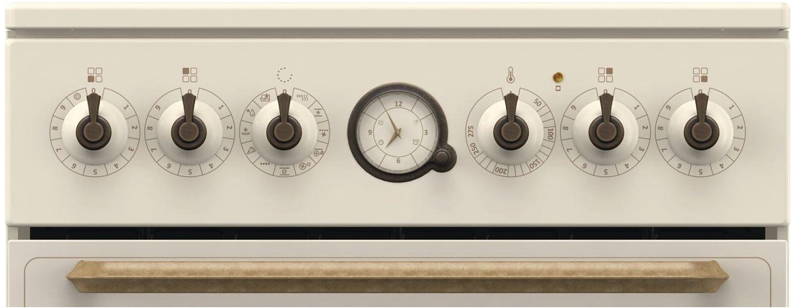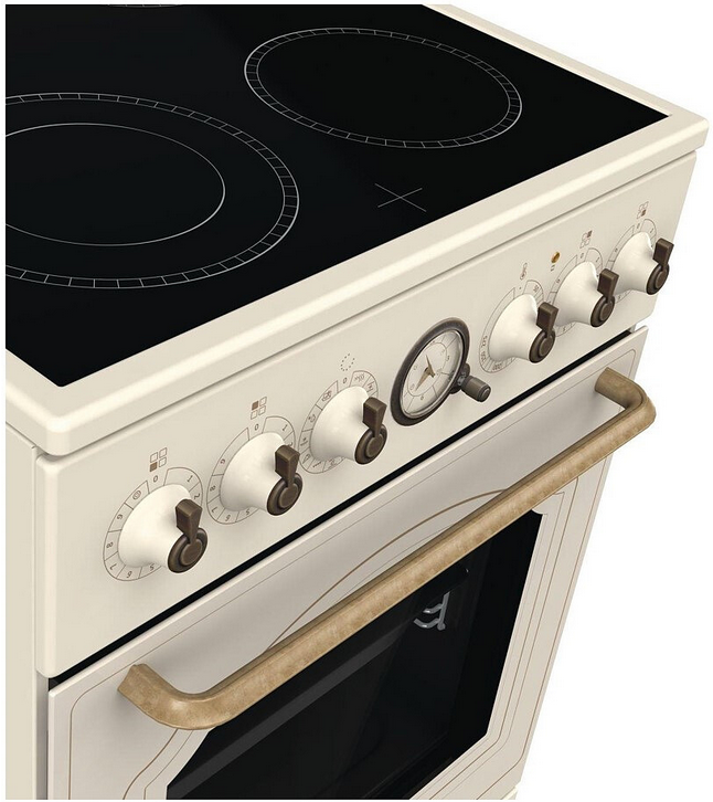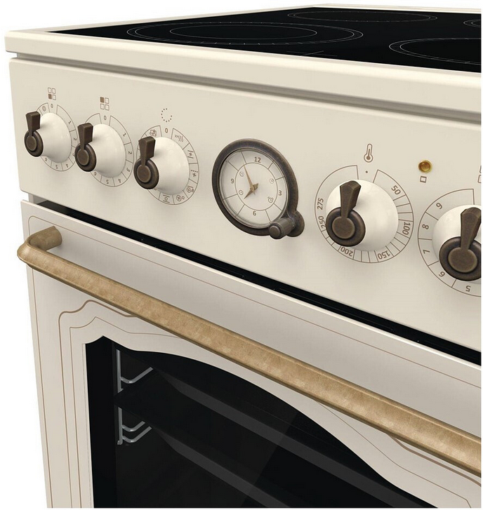 Klasyczna analogowa konstrukcja elektronicznego programowalnego zegara jest jednym z ozdobnych punktów w linii. Posiada zegar i minutę, a także umożliwia zaprogramowanie opóźnionego czasu rozpoczęcia i zakończenia gotowania. Zegar wskazuje koniec procesu pieczenia za pomocą sygnału akustycznego. Klasyczny projekt zegara wraz z pokrętłami w kolorze starego złota uzupełniają ogólny wygląd pieca.