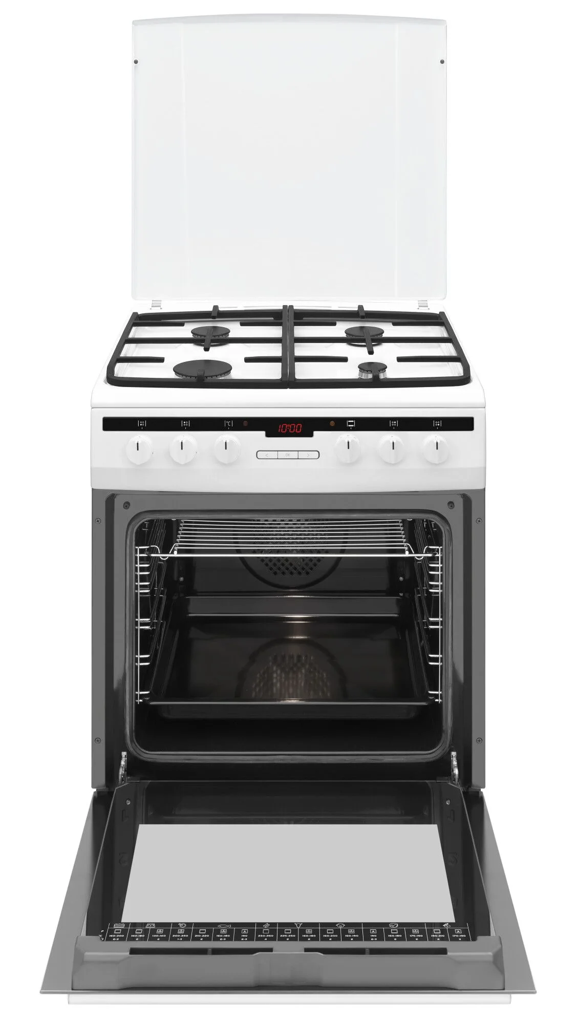 Praktyczny poradnik z parametrami pieczenia na wewnętrznej stronie drzwi.