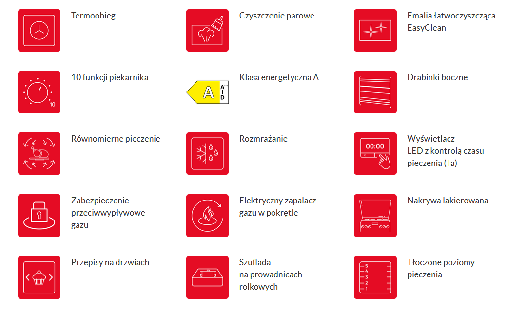 Funkcje: Termoobieg, Grill, Rozmrażanie, Szybkie nagrzewanie piekarnika