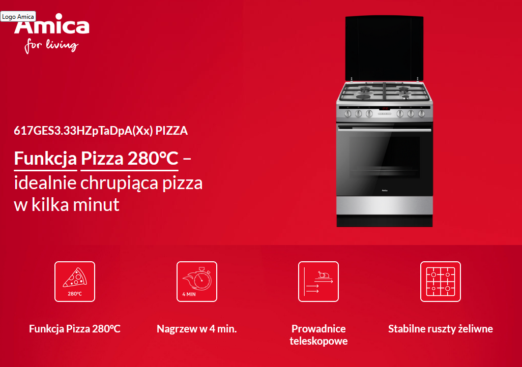 Kuchnia gazowo-elektryczna Amica 617GES3.33HZpTaDpA(Xx) PIZZA