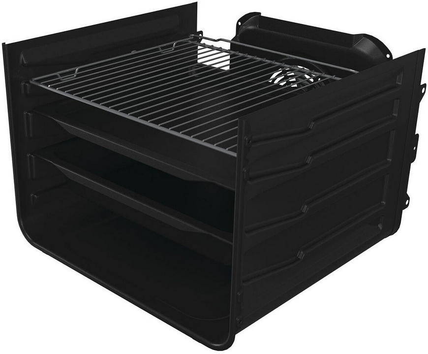 Technologia MultiAir gwarantuje optymalny obieg ciepła wewnątrz piekarnika. Dzięki sprytnie rozmieszczonym otworom wentylacyjnym na tylnej ścianie oraz unikalnemu, zaokrąglonemu kształtowi, powietrze jest równomiernie rozprowadzane w całym piekarniku. Wentylator przepycha gorące powietrze wokół całej objętości piekarnika, dzięki czemu potrawy są idealnie upieczone z każdej strony. Dynamiczny ruch powietrza umożliwia również jednoczesne pieczenie na wielu poziomach bez mieszania się zapachów i smaków.