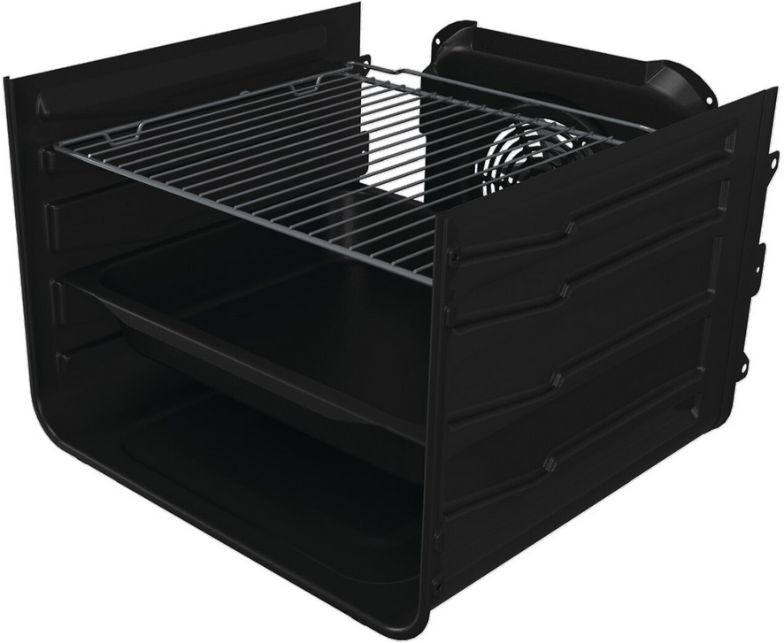 Technologia MultiAir gwarantuje optymalny obieg ciepła wewnątrz piekarnika. Dzięki sprytnie rozmieszczonym otworom wentylacyjnym na tylnej ścianie oraz unikalnemu, zaokrąglonemu kształtowi, powietrze jest równomiernie rozprowadzane w całym piekarniku. Wentylator przepycha gorące powietrze wokół całej objętości piekarnika, dzięki czemu potrawy są idealnie upieczone z każdej strony. Dynamiczny ruch powietrza umożliwia również jednoczesne pieczenie na wielu poziomach bez mieszania się zapachów i smaków.