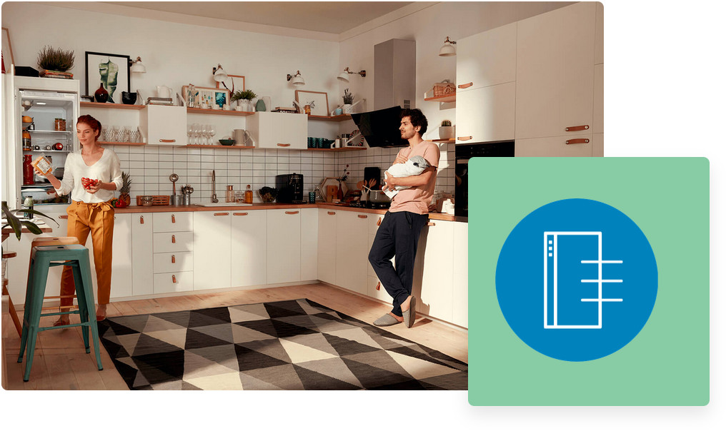 W niektórych kuchniach urządzenia są rozmieszczone w nietypowych miejscach. Drzwi SmoothFit™ licują się po otwarciu ich pod kątem 90 stopni, co oznacza, że lodówkę można łatwo ustawić w narożniku pomieszczenia lub tuż przy ścianie — bez uszczerbku dla łatwości użytkowania. Szuflady również wysuwają się do końca!
