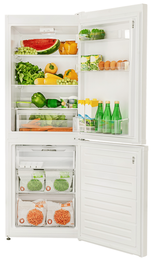 Chłodziarko-zamrażarka wolnostojąca marki Kernau KFRC 15153.2 NF W w kolorze białym wyposażona jest w sterowanie mechaniczne, nowoczesne ledowe oświetlenie wnętrza i NoFrost w zamrażarce. Klasa energetyczna E zapewnia oszczędność w kwestii poboru energii elektrycznej. A to zysk dla Twojego portfela i środowiska. Pojemnik na warzywa i owoce przedłuża świeżość warzyw i owoców, a niska temperatura wpływa korzystnie na dłuższe przechowywanie żywności i jej mniejsze marnowanie. Dzięki zamontowanym w urządzeniu zawiasom typu Corner, z powodzeniem możemy ustawić chłodziarkę w narożniku pomieszczenia. To sprawia, że urządzenie nadaje się także do małych kuchni, w których każdy centymetr jest na wagę złota. Obecny w komorze zamrażarki system NoFrost powoduje, że na ściankach urządzenia i opakowaniach produktów nie gromadzi się lód. Dzięki temu produkty przechowywane w zamrażarce nie zlepiają się i z łatwością je wyciągniesz. Co oczywiste, NoFrost ogranicza też konieczność odmrażania lodówki. Chłodziarka świetnie sprawdzi się u singla lub w małej rodzinie. Zmieścisz w niej produkty o łącznej objętości netto 221 litrów. Jej wysokość wynosi 152 cm, a szerokość to tylko 54 cm.