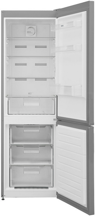 Chłodziarka o pojemności 207 litrów oferuje 4 półki i 3 balkoniki na drzwiach, co pozwala na wygodne przechowywanie dużej ilości produktów. Oświetlenie LED zapewnia doskonałą widoczność, a technologia NoFrost Multi-Cooling równomiernie rozprowadza chłodne powietrze, eliminując oszronienie i gwarantując optymalne warunki dla przechowywanej żywności.