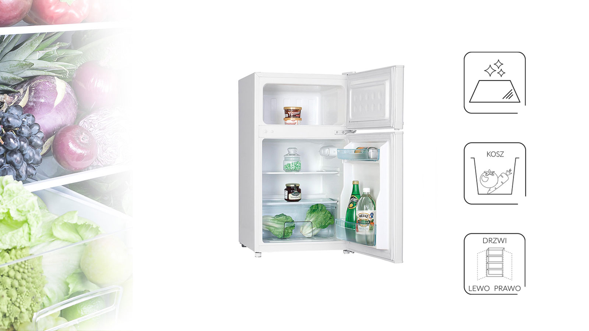 W części chłodniczej znajdziemy wygodne szklane półki, pojemnik na warzywa oraz pojemnik na jajka. W zamrażarce nie tylko przechowamy produkty, ale też zamrozimy je przedłużając ich przydatność. Możliwość montażu drzwi zarówno po prawej jak i lewej stronie pozwala dostosować urządzenie do własnych potrzeb.
