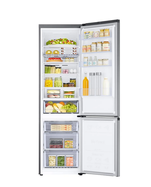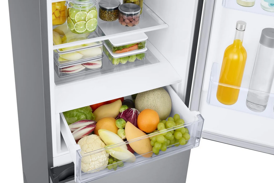 Technologia pełnego No Frost marki Samsung zapewnia stały obieg chłodnego powietrza, systematycznie usuwając nadmiar wilgoci z wnętrza lodówki. Dzięki temu lód i szron nie osadzają się na ściankach czy produktach. Żywność zachowuje świeżość i wartości odżywcze na dłużej, a utrzymanie czystości jest łatwiejsze – bez rozmrażania.