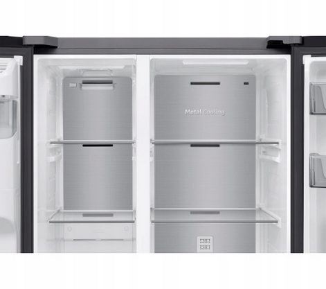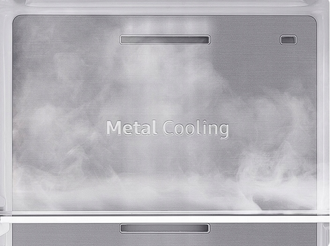 Technologia ta utrzymuje optymalną temperaturę wewnątrz lodówki, dzięki czemu żywność pozostaje świeża, nawet przy częstym otwieraniu i zamykaniu drzwi. Panel Metal Cooling na tylnej ścianie zatrzymuje zimno wewnątrz i pomaga przywrócić niską temperaturę. Dodatkowo nadaje lodówce elegancki wygląd i jest łatwy w czyszczeniu.