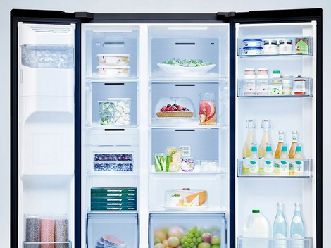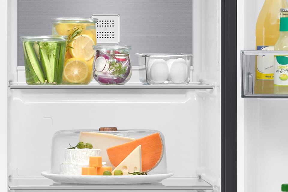 System All-Around Cooling równomiernie chłodzi każdą część lodówki. Zimne powietrze wdmuchiwane jest przez otwory wentylacyjne umieszczone na kilku poziomach, dzięki czemu temperatura wewnątrz jest stabilna, a jedzenie dłużej pozostaje świeże.