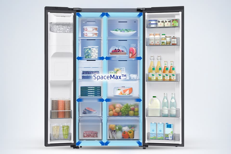 Przechowuj więcej żywności w wyjątkowo dużej lodówce o pojemności 635 litrów. Wysokowydajna izolacja SpaceMax™ sprawia, że ścianki są znacznie cieńsze, co zapewnia więcej miejsca do przechowywania bez zmiany parametrów zewnętrznych urządzenia.