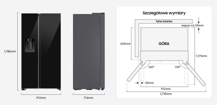 Lodówka Samsung RS70F64KEBEO Side By Side 178,6cm Czarne Szkło