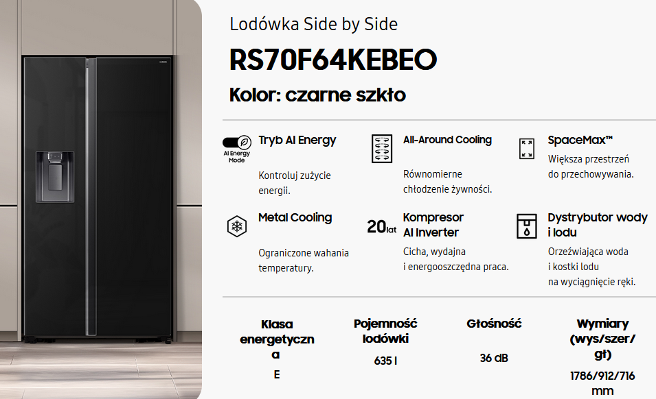 - Technologie producenta AI Inverter, AI Energy Mode, SpaceMax, Metal Cooling, Power Cool, Power Freeze