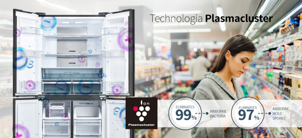Technologia Plasmacluster, opracowana i opatentowana przez firmę Sharp, naśladuje to naturalne zjawisko i została zaimplementowana w lodówce Sharp. Dzięki generatorowi jonów, który jest częścią tej technologii, nie tylko poprawia się jakość powietrza wewnątrz lodówki, ale również znacznie wydłuża świeżość przechowywanej żywności.