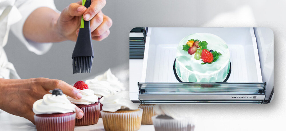 Tryb chłodzenia w komorze Fresh Room pozwala schładzać napoje oraz żywność bez obaw o przemrożenie. Skorzystaj z niej, jeśli chcesz cieszyć się wyśmienicie schłodzonymi napojami lub deserem w upalne dni.