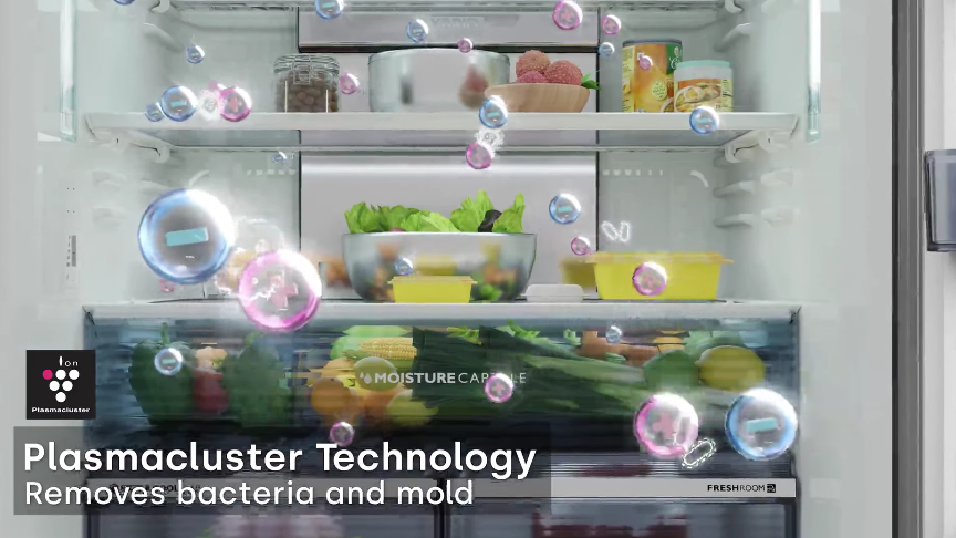Zanim produkty spożywcze trafią do naszej lodówki, przechodzą długą drogę: pakowanie, transport, wykładanie na półki i tak dalej. Dotyka ich wiele osób, są wystawione na różne warunki jak pogoda czy magazynowanie. Czy zatem możemy mówić, że szklana butelka, którą stawiamy w lodówce, jest czysta? Dla bezpieczeństwa wszystkich produktów spożywczych, które przechowujemy w lodówce, w komorze chłodzenia został zainstalowany generator jonów Plasmacluster.