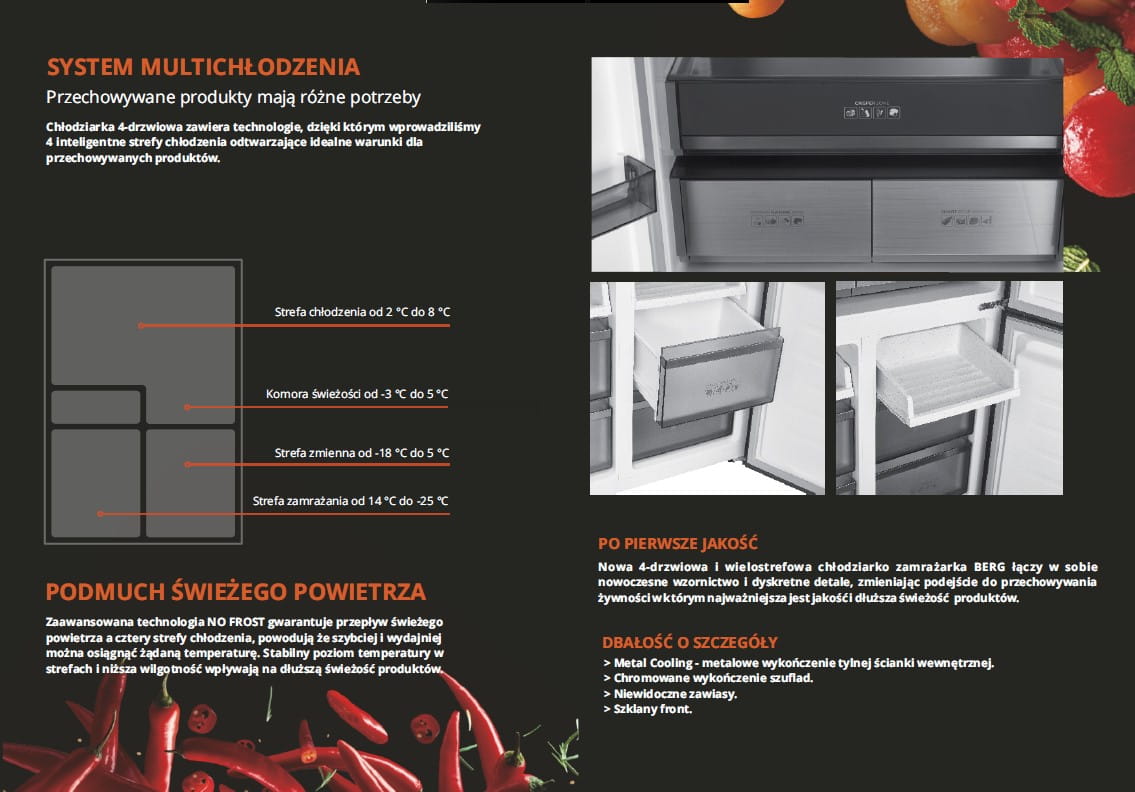 4 strefy temperatury do samodzielnego ustawienia 2-8 °C, -3-5 °C, -18-5 , -14-25 °C,