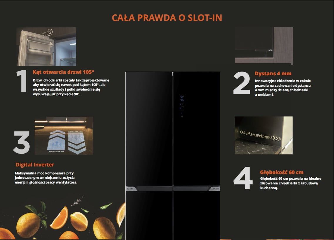 Odkryj chłodziarkę multidoor, która idealnie wkomponuje się w zabudowę Twojej kuchni dzięki perfekcyjnemu slot-in dopasowaniu – bez szczelin i zbędnych przestrzeni! Wyposażona w kompresor inwertorowy, technologię Metal Cooling oraz system No Frost, zapewnia równomierne chłodzenie i koniec z rozmrażaniem. Dodatkowo 4 strefy chłodzenia, w tym zmienna strefa temperatur, umożliwiają pełną kontrolę nad warunkami dla każdej kategorii produktów!