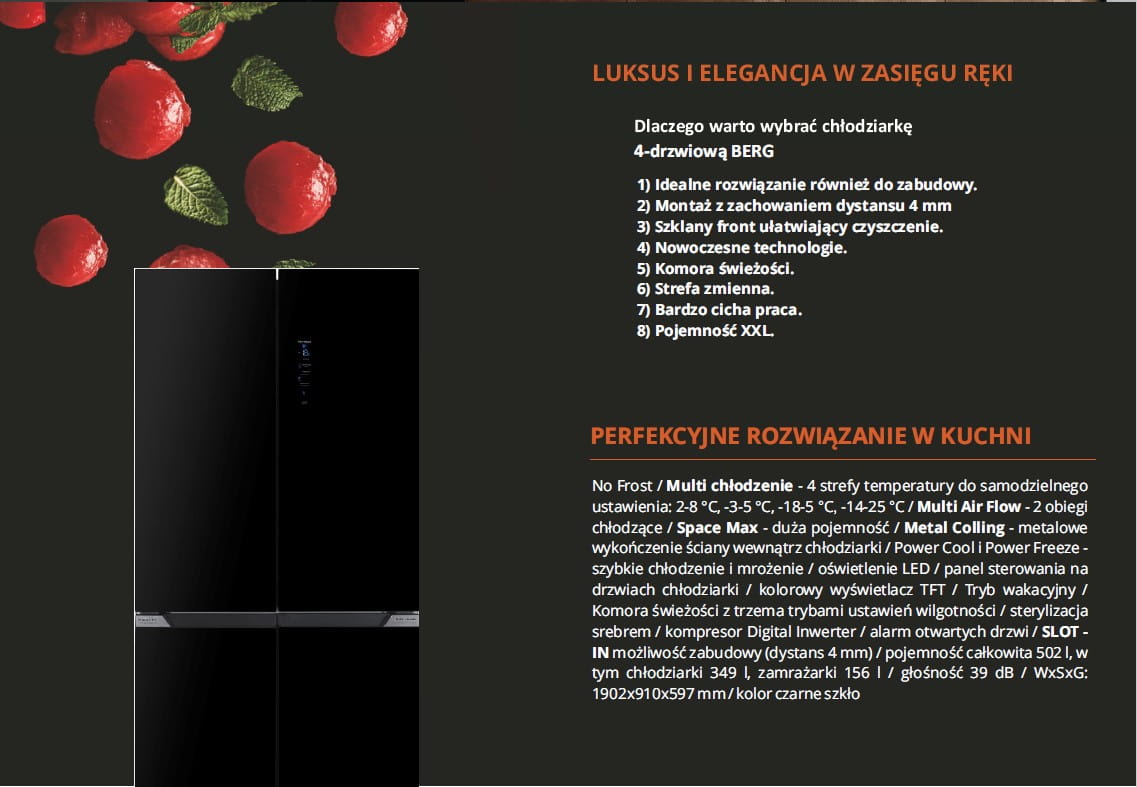 Lodówka Side by Side BERG CZW190NBG03 5 LAT GWARANCJI !