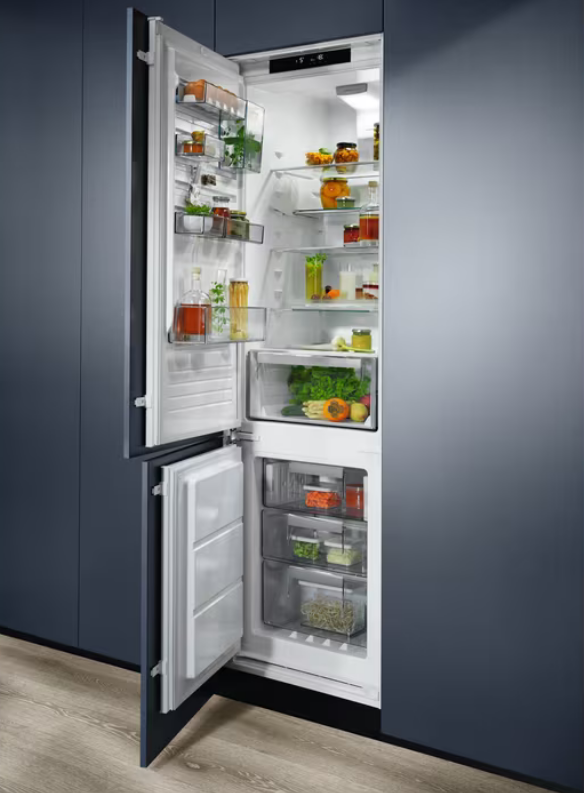 Lodówka MultiSpace jest wyższa niż standardowe urządzenia, dzięki czemu oferuje więcej miejsca na przechowywanie produktów. Wiele praktycznych rozwiązań pozwala dostosować dostępną przestrzeń, aby lepiej odpowiadała bieżącym potrzebom użytkownika.