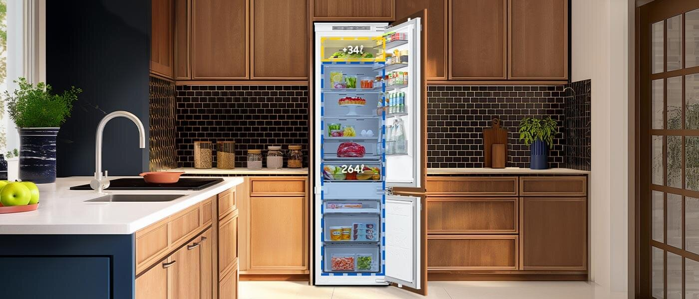 Wyższa, pojemniejsza, wygodniejsza. Potrzebujesz więcej miejsca w lodówce? Mamy rozwiązanie! Nasza nowa lodówka do zabudowy, dzięki zwiększeniu wysokości z 178 do 194 cm, oferuje aż 298 litrów pojemności – to o 34 litry więcej niż standardowy model!