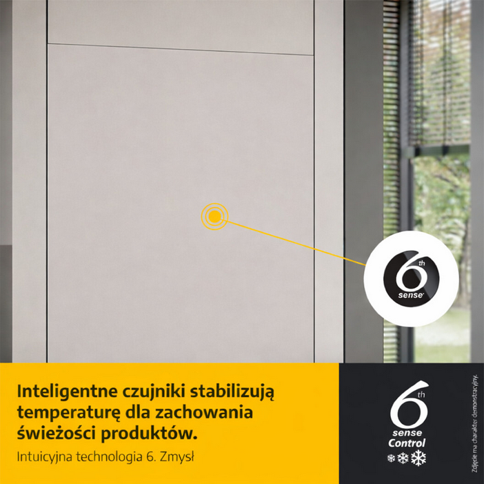 Technologia 6TH SENSE monitoruje temperaturę wewnątrz zamrażarki i lodówki i automatycznie zwiększa zamrażanie, gdy jest to konieczne. Wydajna i przyjazna dla środowiska.