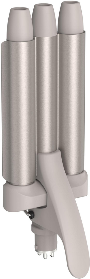 Trendology posiada 2 nakładki w kształcie tradycyjnej lokówki. Grzałka o średnicy 13 mm sprawdzi się do tworzenia drobnych loczków, natomiast końcówka z grzałką o średnicy 33 mm to doskonały wybór, jeśli chcesz uzyskać swobodne fale. Oprócz tego w zestawie znalazła się stożkowa grzałka o średnicy 13-25 mm, która pozwala na stylizację naturalnie wyglądających, zdefiniowanych loków. Chcesz osiągnąć efekt syrenich fal? Użyj falownicy – nakładki składającej się z 3 grzałek o średnicy 22 mm. Ostatnim akcesorium jest okrągła szczotka o średnicy 38 mm, która zapewni objętość u nasady i efekt luźnych loków.