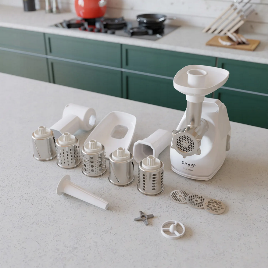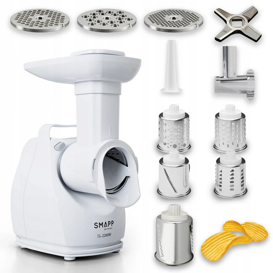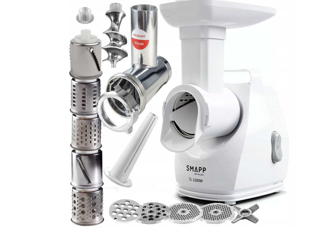 Maszynka do mielenia z szatkownicą 490.81 REWERS 2200 W SMAPP Biała z niezawodnym silnikiem ZELMOTOR