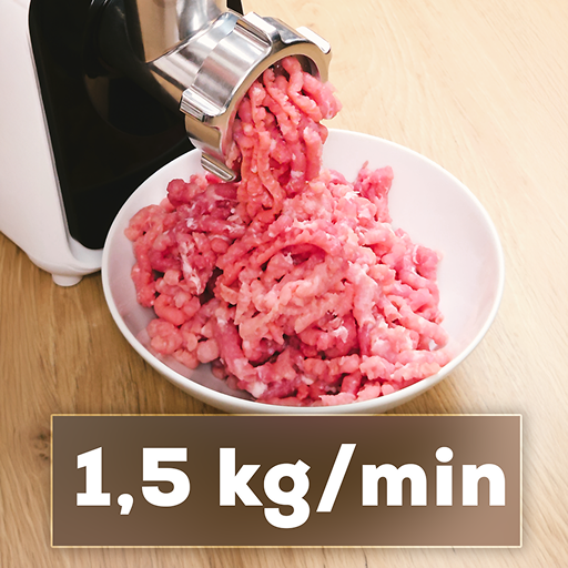 Wydajność 1,5 kg/min sprawia, że maszynka do mięsa z linii Basic, doskonale radzi sobie z szybkim przetwarzaniem mięsa czy sera. To idealne rozwiązanie dla osób, które cenią sobie oszczędność czasu i chcą błyskawicznie przygotować większe ilości składników do domowych potraw.