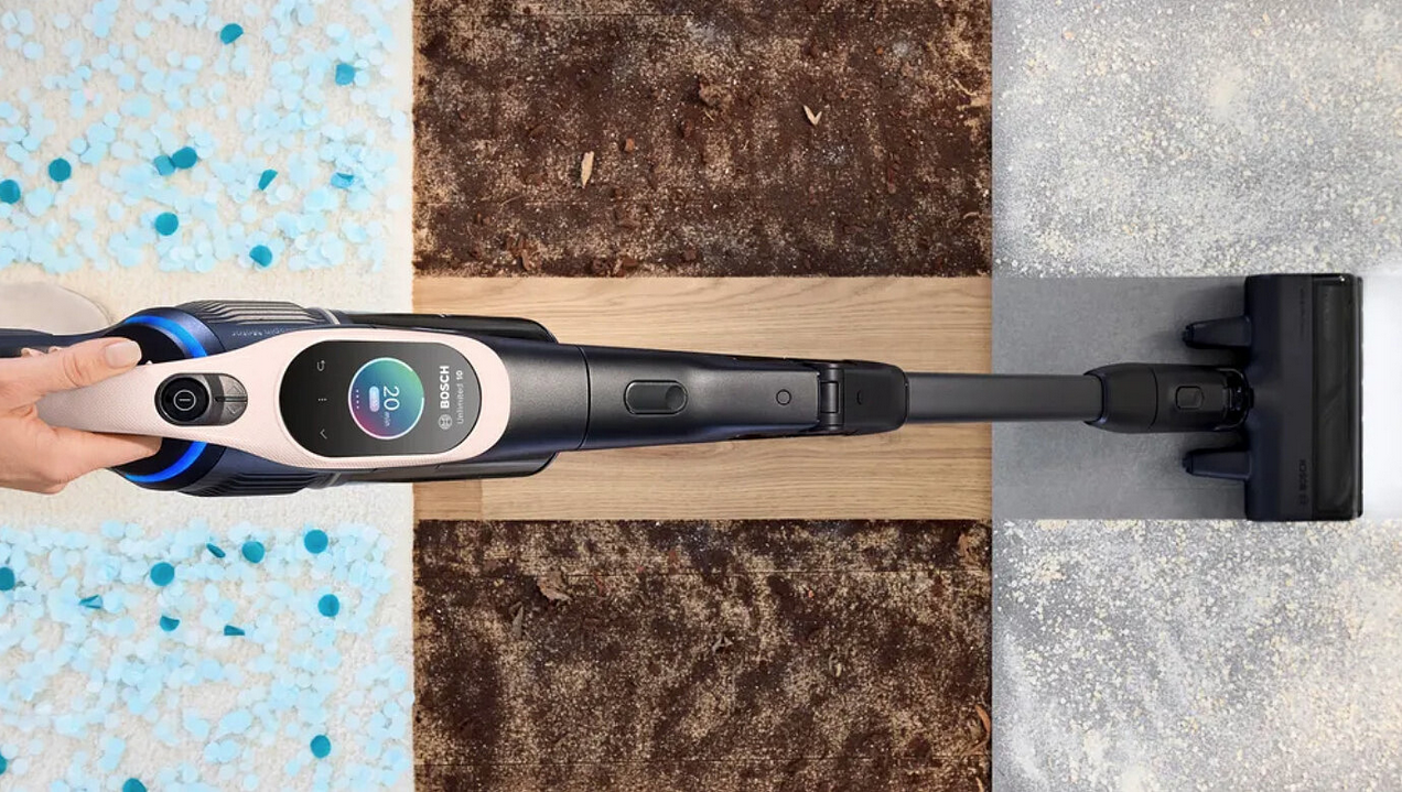 * Na podstawie testów wewnętrznych z wykorzystaniem włosów o długości 60 cm, w trybie Eco, w porównaniu z Bosch Unlimited Serie 8 z elektroszczotką HardFloor Soft Brush (BHZUHFN).