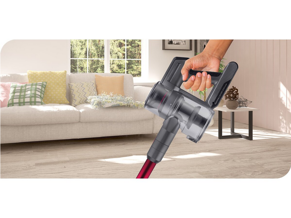 Nasz odkurzacz wyposażyliśmy w wymienny akumulator, który zapewni Ci niezrównaną wygodę podczas sprzątania. Teraz możesz pozbyć się uciążliwych ograniczeń długości kabla. Nasze urządzenie umożliwia swobodne poruszanie się po całym domu, bez konieczności szukania gniazdka elektrycznego. Dodatkowo możesz wydłużyć czas odkurzania – gdy jeden akumulator się wyczerpie, po prostu go wymień na naładowany nie przerywając pracy!